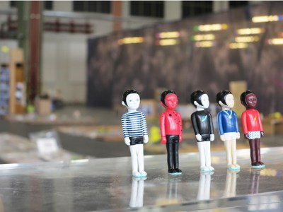 Nach China geht’s nach links – kurz vor dem sich mit Absperrband abgrenzenden deutschen Designpreis und neben dem niederländischen Institut für Design und Mode. Lag ein Fokus des DMY 2011 auf der Kopierkultur im Designbereich, so könnte der diesjährige Gast als logische Fortsetzung aufgefasst werden. Das Land hat bei der europäischen Designcommunity einen schweren Stand – die hiesigen Gesetze um Rechte, Patente und Geschmacksmuster nimmt China bekanntlich nicht allzu ernst. Wenn in Frankfurt zur Konsumgütermesse Ambiente der Plagiarius verliehen wird, ein schwarzer Zwerg, dessen goldene Nase auf die dreistesten Produktkopien zeigt, kann China sich nicht selten über gleich alle Plätze auf dem Treppchen freuen. Jetzt, im chinesischen Kulturjahr „China in Deutschland 2012“ soll sich die einseitige Wahrnehmung ändern. „China New Design“ zeigt zeitgenössische Entwürfe junger Gestalter neben einem Potpourri an chinesischen Alltagsgegenständen. Zeitschriften, glitzernde Totenkopf-Telefone, Spielfiguren, in Zellophan geschweißt und hierarchiefrei auf dem Boden aufgereiht: das Schlimme, das Profane, das Kitschige, das Schöne. Die zeitgenössischen Möbelentwürfe stehen prominent daneben in einem Spiegel aus Reis, der alte Klischees neu auslegt. Der mutmaßliche Schatten der Möbel wurde auf dem schwarzen Boden des Hangars freigefegt.