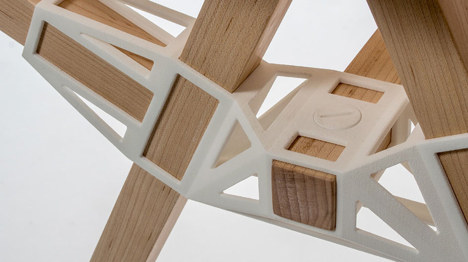 Ein Beispiel ist der deutsche Hersteller Purmundus, der sich in seiner Kollektion vor allem auf Dekorations- und Lichtobjekte konzentriert, die die ästhetischen Qualitäten in den Vordergrund stellen. Leuchten wie Cynara SLS reizen die technischen Möglichkeiten aus, spielen mit Oberflächen, Strukturen und mathematischen Flächen. Gleichzeitig sind sie aber in ihrer Größe überschaubar – und damit auch im Preis. Der ist derzeit noch das größte Hemmnis. Mittelgroße Werkstücke kosten schnell bis zu 500 Euro. Deshalb versuchen Hersteller und Gestalter, kleine Objekte zum Schaustück der Potenziale zu machen – was faszinierend ist, aber nicht unbedingt eine Augenweide für Minimalisten. Schnell wird so klar: Das neue Werkzeug muss seine Sprache erst noch finden. Wohin es gehen könnte, zeigt das Studio Minale Maeda mit seinem Projekt Keystones. Gedruckte Verbindungselemente bringen Latten, Stäbe und Bretter zu Tischen, Garderoben oder Böcken zusammen. Die weißen Module werden zu durchaus dekorativen Gelenken eines Holzskelettes und gereichen dem guten alten Grundsatz von form follows function zur Ehre. Das Design könnte als Datensatz geladen und vor Ort zusammengebaut werden.