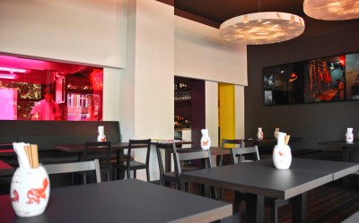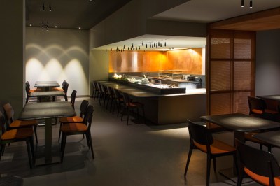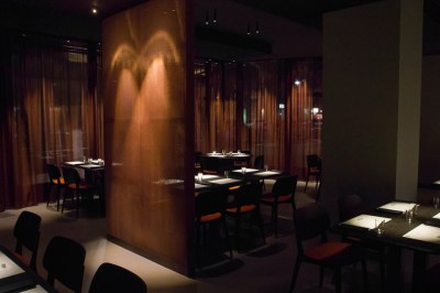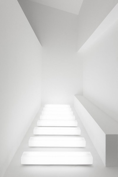 In welche Richtung die Inszenierung ausschlägt, hängt also auch vom Grundkonzept der jeweiligen Gastronomie ab. Der Good Time Grill in Mitte serviert gehobene Küche in einem in warmen Braun- und Orange-Nuancen gehaltenen Gastbereich. Geht der Gast zur Toilette im Untergeschoss, führt der Weg dorthin durch einen radikalen Weißraum. Erleuchtet wird er von Lichtboxen, die in ihrem grafischen Rhythmus an Donald Judd denken lassen. Die versetzte Kubatur des Flurs wird zu einem Licht- und Schattenspiel. Der Gast fällt aus der weichen Atmosphäre oben in diese neue Umgebung unten wie Alice im Wunderland. Mit ähnlichen Folgen wie im Märchen – zurück am Tisch hat der Gast unten ein ästhetisches Abenteuer erlebt, von dem seine Tischnachbarn oben nichts ahnen.
