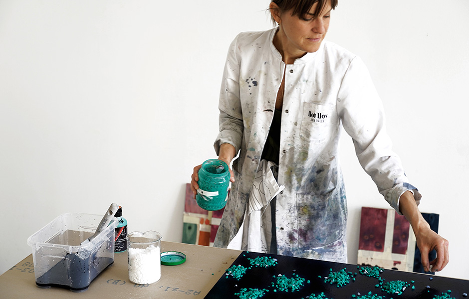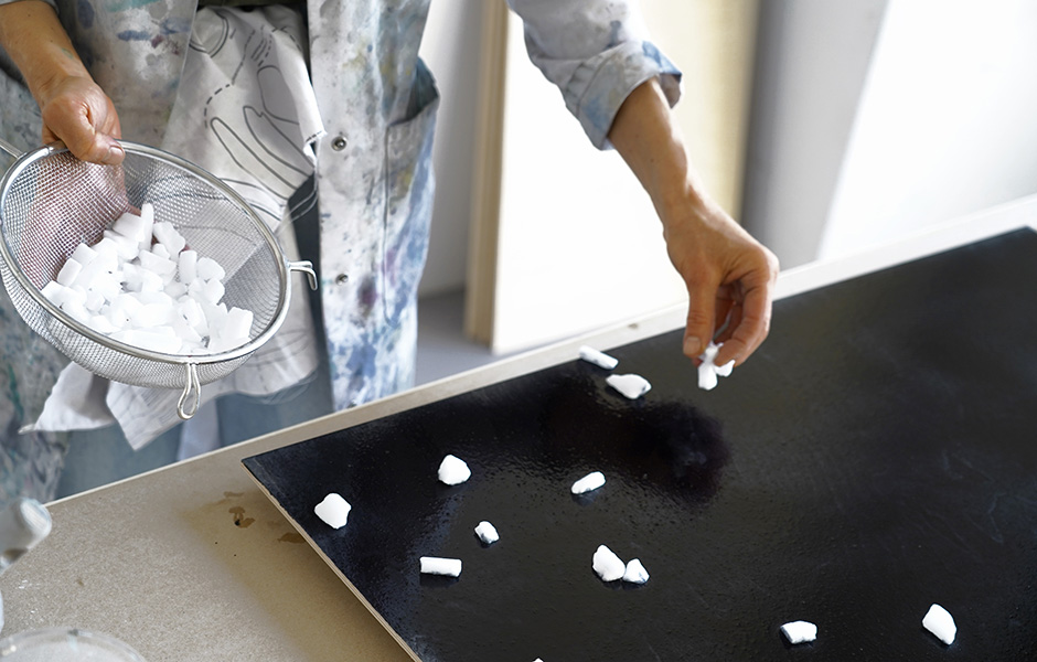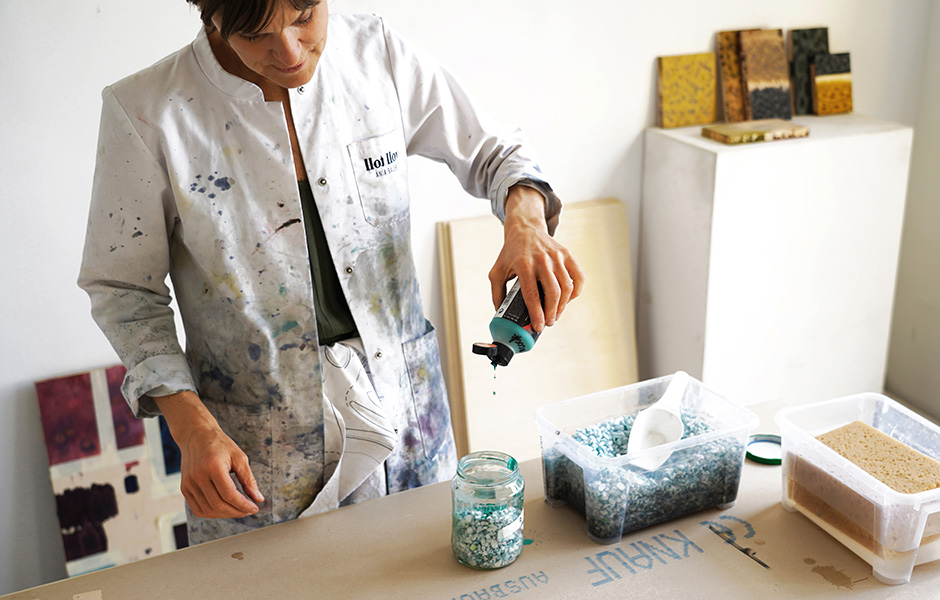 Eine Leuchte wie eine Piñata. In Beton gegossener Nagellack. Salze in Dimensionen zwischen Hagelkörnern und Kieseln, die frisch gestrichene Holzplatten gleich wieder erblassen lassen: Das Berliner Studio llot llov denkt und arbeitet maximal unkonventionell. Wir haben Ania Bauer, die neben Jacob Brinck zum Gründungsduo gehört, im weitläufigen Werkstatt-Loft besucht und ihr bei Forschung und Fertigung über die Schulter geschaut.