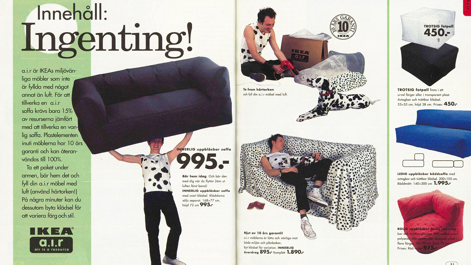 Wenn wir also den IKEA-Katalog aus dem Jahr 2000 aufschlagen, können wir der Lebenswelt des neuen Millenniums einen ungefilterten Besuch abstatten. Was zuerst auffällt: Die Nullerjahre stopften den Wohnraum bis in die letzte Ecke aus. Wer vergleichend durch die Ausgabe von 1968 blättert, der findet dort eine reduzierte und aufgeräumte Variante des demokratischen Wohnens: Textilien, Stahlrohr, ein paar Deko-Objekte. 2000 hingegen wirkt heute auf uns wie Futurismus vom Grabbeltisch. Silbern lackiertes Plastik, Aufblasmöbel und viel zu viel Krempel bis aufs letzte Regalbrett. All das zeigte die Tendenz zur Überdosierung des Konsums, aber auch, dass 2000 ein Jahr des technologischen Optimismus war. Das Internet war ein junger Mitbewohner und die New Economy versprach eine Zukunft grenzenloser Möglichkeiten. Davon erzählte allein schon die Pantone Farbe des Jahres 2000: Cerulean klingt nicht nur nach einem Planeten eines entfernten Sonnensystems, es sieht auch danach aus. Das kühle Himmelblau erinnert an den Horizont an einem Wintermorgen. Es soll als Raumfarbe entspannend wirken und ist dafür dann doch etwas zu eisig.